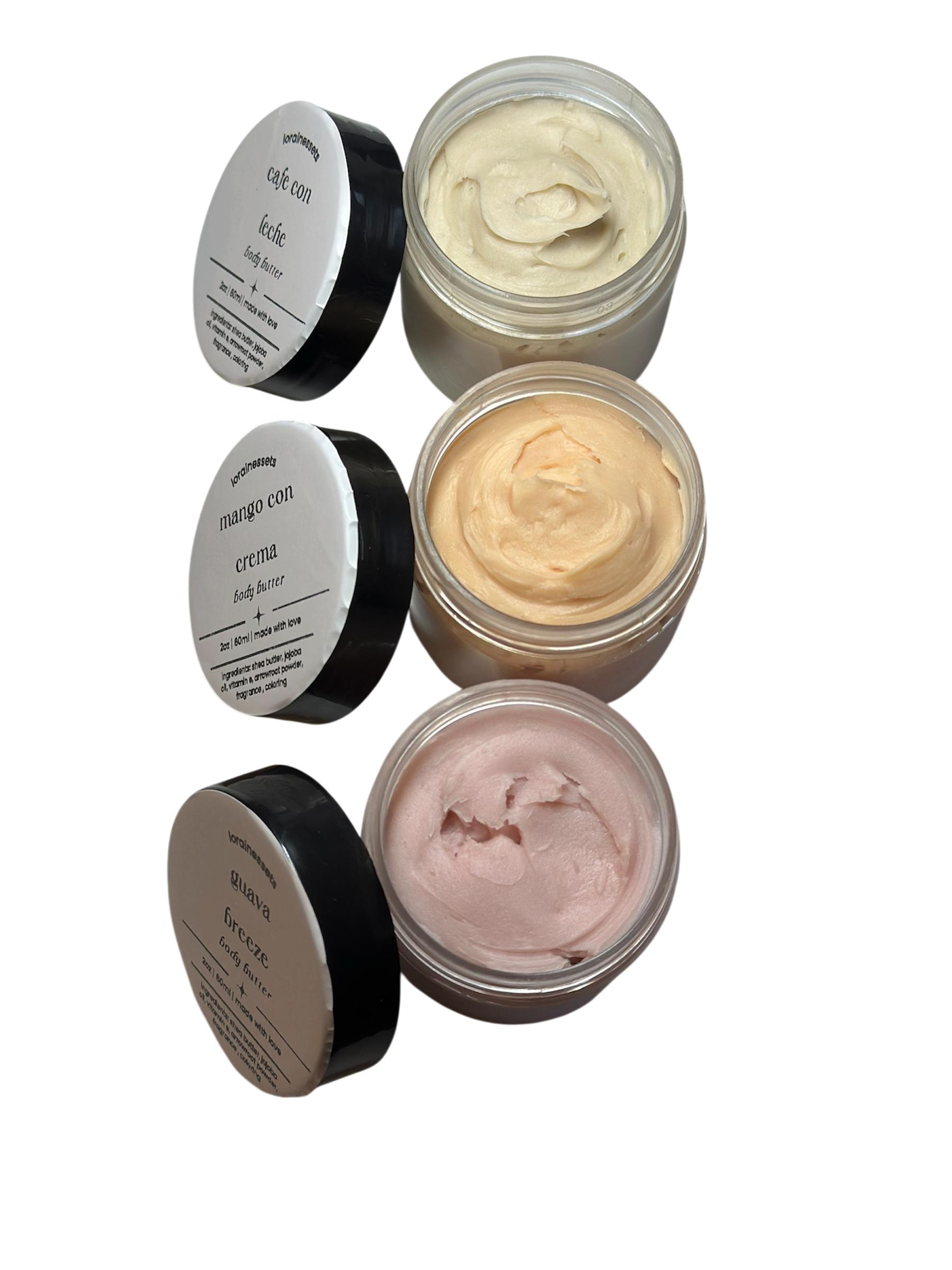 shea butter, coconut oil, jojoba oil, vitamin e, arrowroot powder, fragrance and coloring