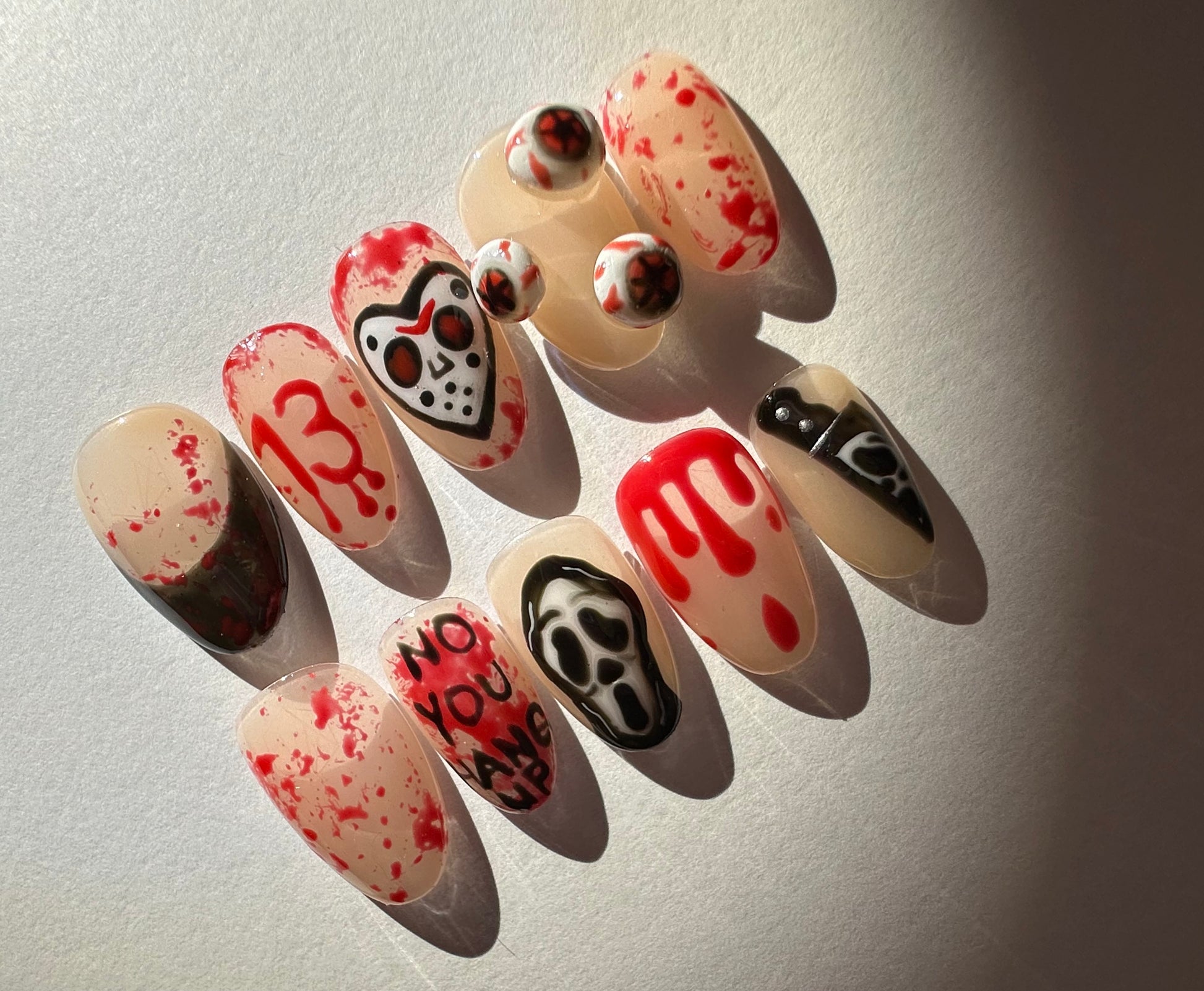 ensure to double check your nail sizes prior to ordering (if you're in between sizes, it is best to go up as you can file them down). also, there may be slight variations as each set is 100% hand painted/hand made.
